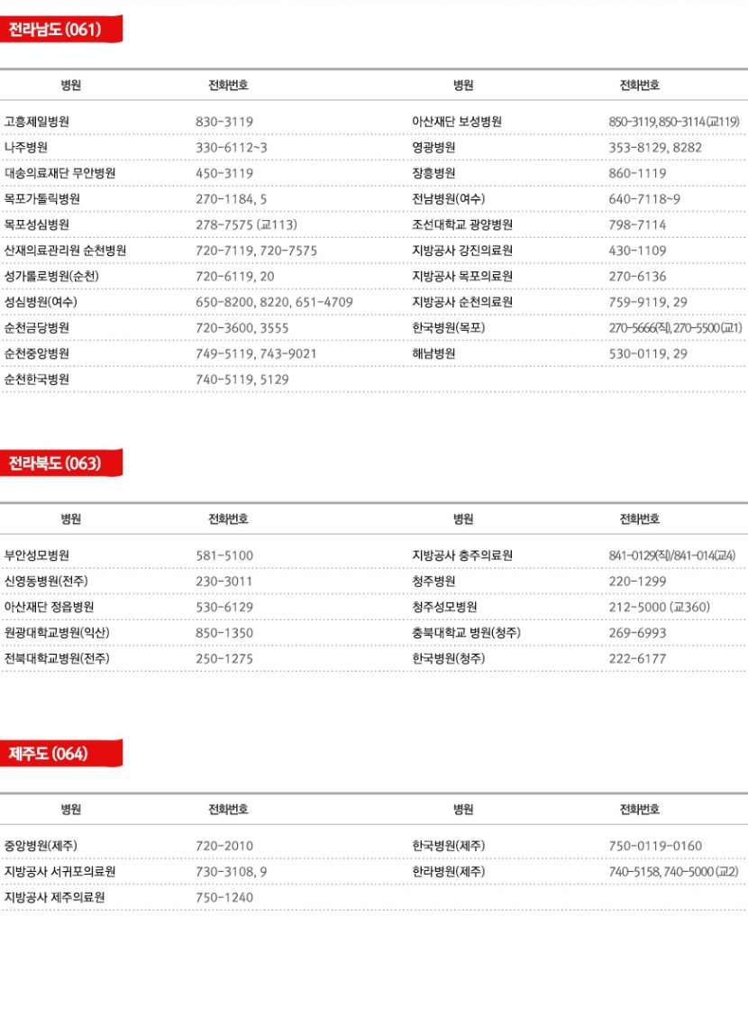 > 전국응급전화번호 > 전라/제주